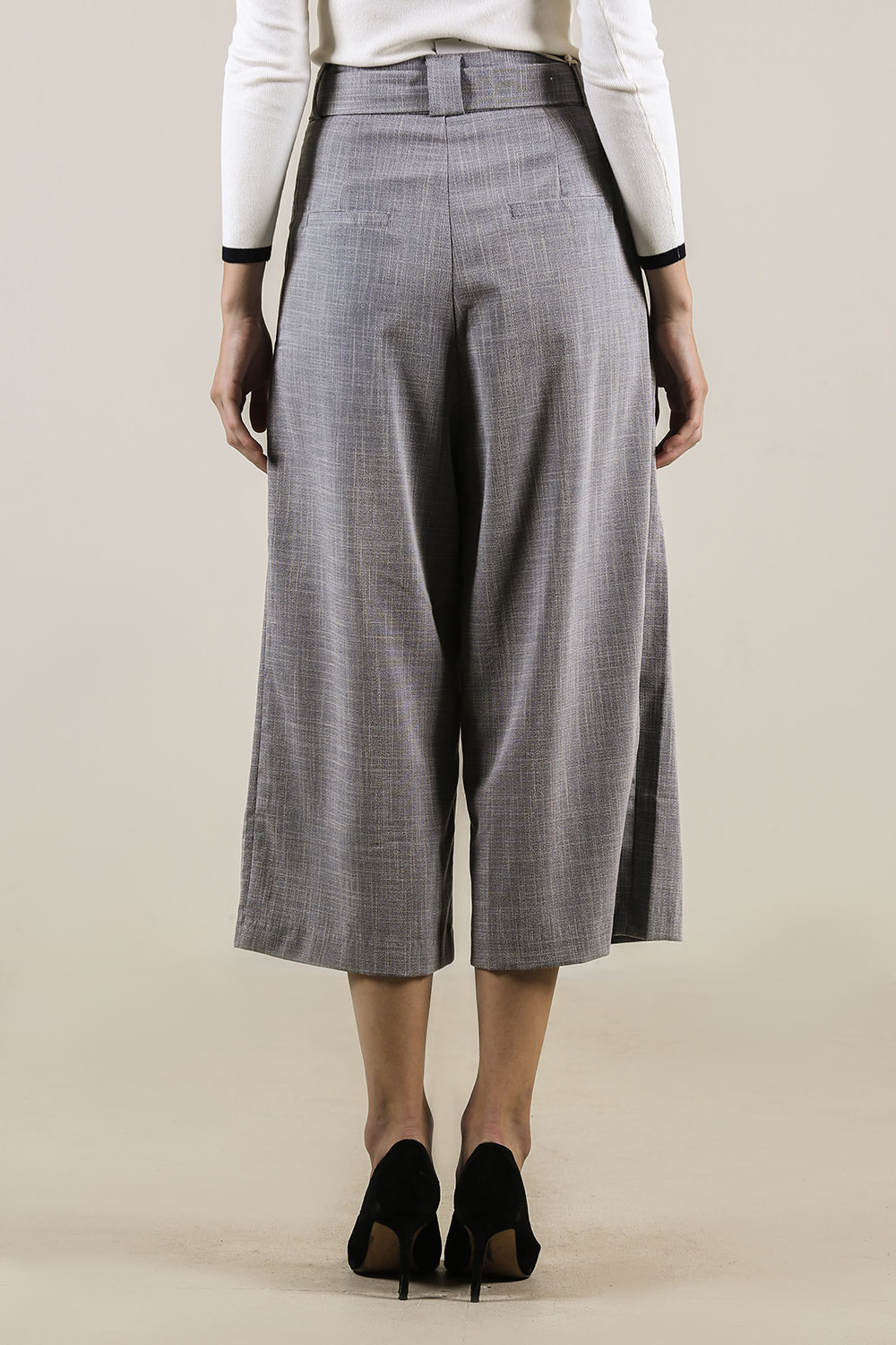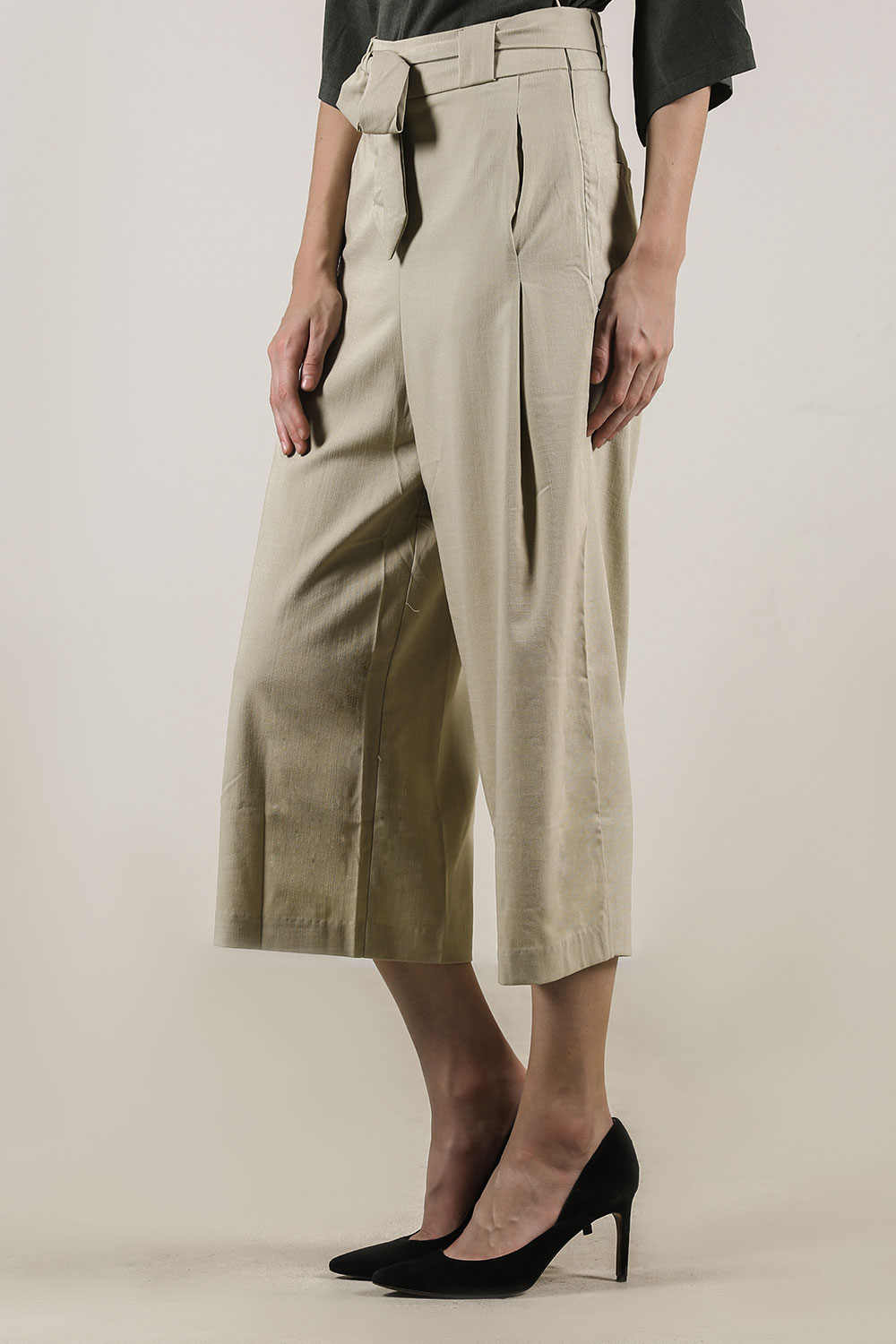 Culottes pants with side pockets, featuring matching belt that ties into a bow in the front