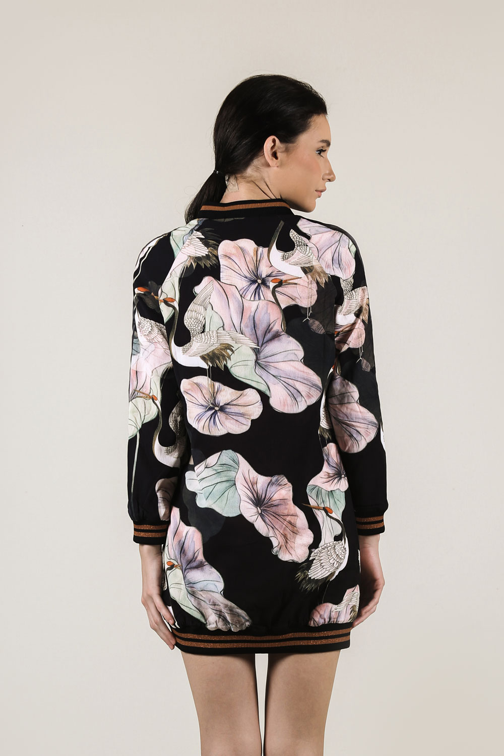 A long bomber looks with side pockets and a zip-up front