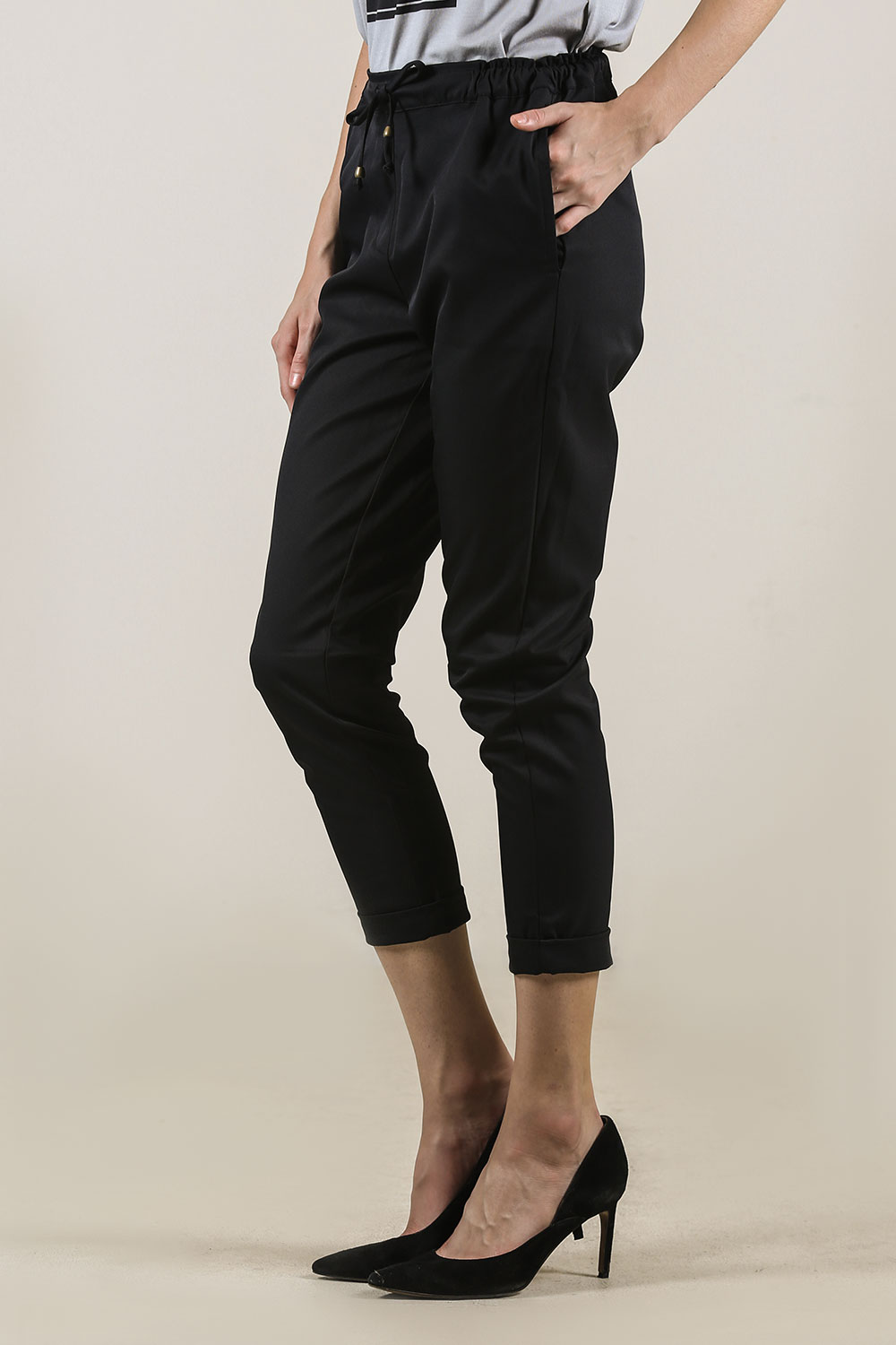 Long pants with adjustable drawstring, rolled-up hem and side pockets