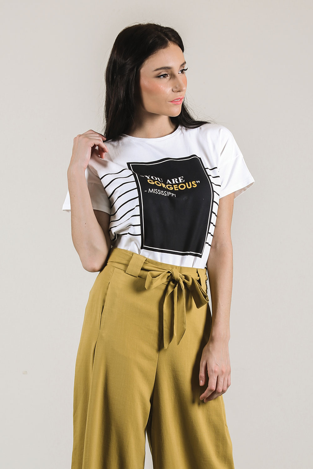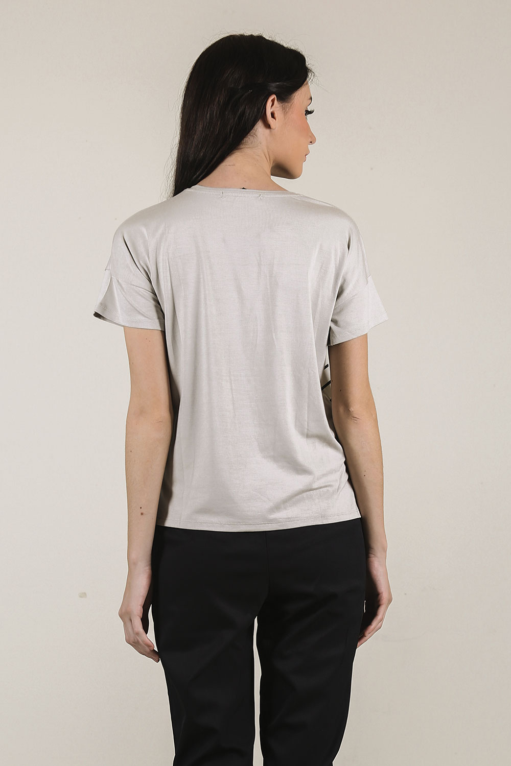 Round neck t-shirt with short sleeve and contrasting printscreen detail on the front